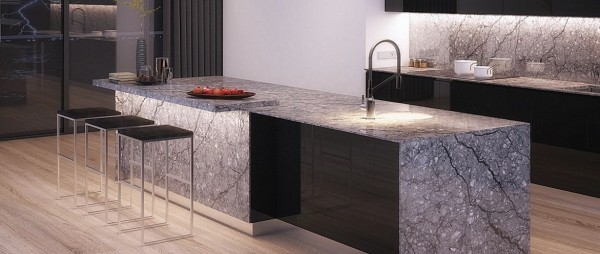 - Unistone Bianco Assoluto– Bianco Assoluto is a quartz stone that has a vibrant white hue spreading radiance in any interior area. It looks as natural as a pure snow white marble but does not inherit the risks of staining or scratching the natural stone when used as kitchen worktops.