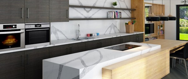 - Unistone Calacatta Toscane– Etched on a white pearly backdrop, the Calacatta Toscane is reminiscent of the natural Calacatta Tuscany marble from Italy that amplifies any interior area. While it is made in an industrial setting, this stone replicates the essence of the natural marble.