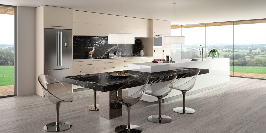 For the more daring, you can combine your cashmere kitchen with black worktops to add a modern and edgy touch to your home. For example, you can choose black granite models with white dots that seem to come from another galaxy, such as Cosmos Black or Black Galaxy Granite.