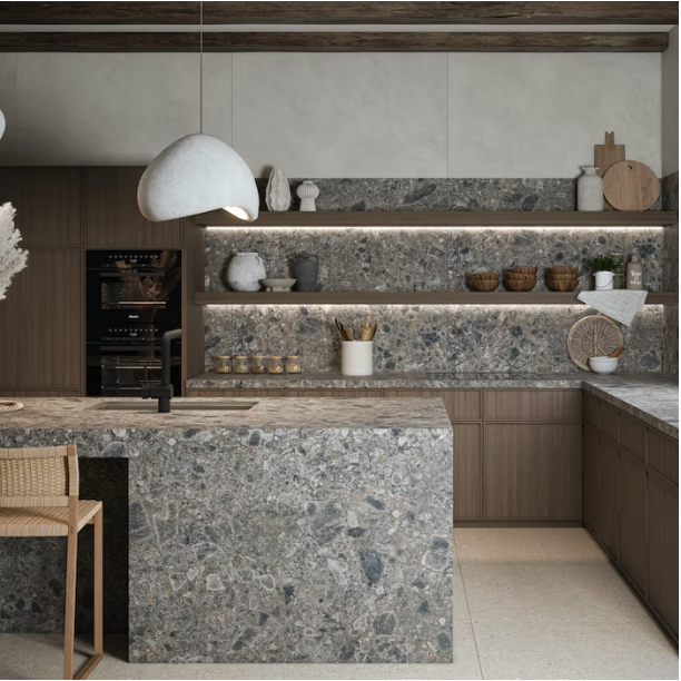 Finally, although we have not mentioned it so far, terrazzo is also an incredible and fun option. We propose the Technistone Taurus Terrazzo Black, a model that rediscovers the timeless and unparalleled beauty of traditional terrazzo through the integration of quartz. And of course, its performance is also unparalleled!