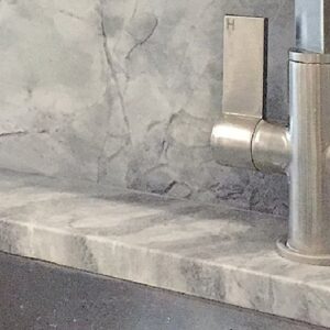 Bianco Eclipse is a very coarse, in between off-white to white-grey quartzite with small and big grey veins varying in both pattern and shade of colour, original from Brazil.