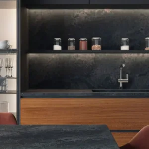 Darcrest is part of Caesarstone’s Supernatural collection, which is made from a blend of 93% quartz and 7% resins. This makes it a very durable and stain-resistant workrtop that is also easy to care for. Darcrest is also available in a honed finish, which gives it a soft, matte finish that is perfect for a modern or rustic kitchen or bathroom.