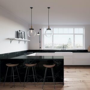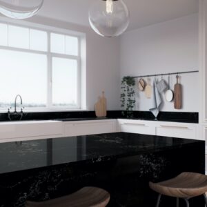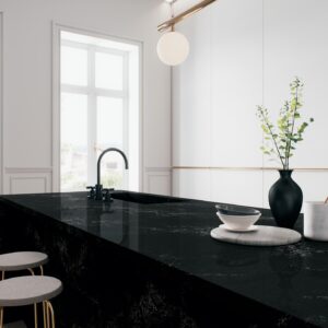 Empira Black offers the natural look of the best Black Marble with deep grey and white veining. This is a high-end engineered quartz by leading manufacturer Caesarstone.