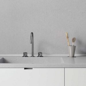 Caesarstone Flannel Grey is a concrete-grey quartz stone with the looks and feel of the traditional concrete material in a subtle combination of monochromatic tones which is highly versatile and ideal for any interior space.