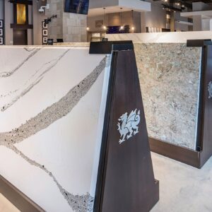 Cambria Annicca brings you the look of marble with a twist. In combination with white, golden and purple glitter it is sure to bring life and Royal looks to your space.