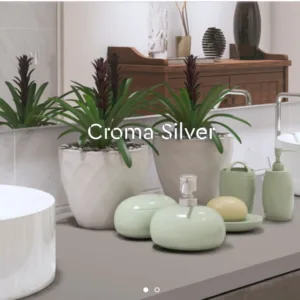 The perfect partner for on-trend white, black and grey in interior design, Croma Silver brings bling to the indoors in a very elegant way.