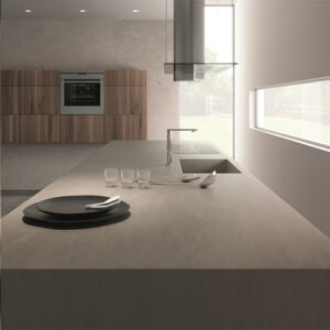 Ceralsio Oxford Grey is a porcelain surface with a light-to-mid grey backdrop and random veining scattered through its surface. Emulating stone in colour and design, Oxford Grey has a veining that lends it a subtle dynamism. A countertop of timeless beauty, it will fit in perfectly with any style of interior design. Available in both a natural and polished finish.