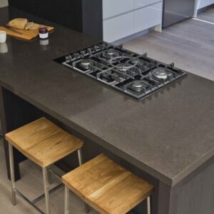 Cimstone Boreas is a dark grey backdrop quartz surface with the look of natural granite and marble, that is ideal for interiors and architectural decoration in bathrooms, kitchens, halls, fireplace surrounds and flooring.