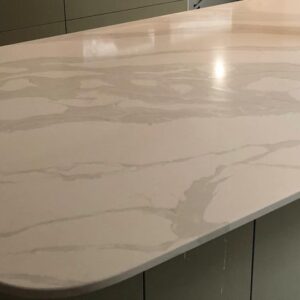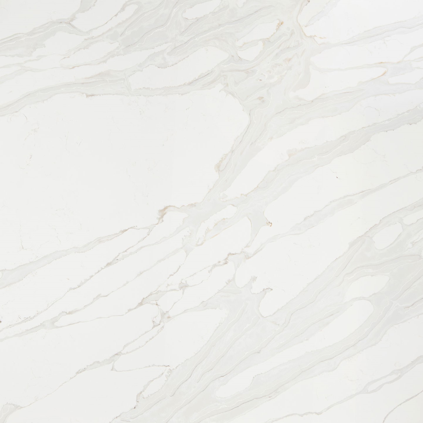 Calacatta Venatina brings multiple grey veins with dynamism over the white quartz stone surface.