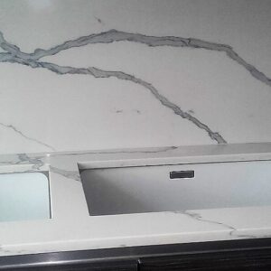 Classic Quartz Statuario Venato offers a white backdrop accented with veins in deep grey and light grey patterns.