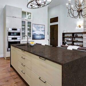 A uniformed specled brown granite with different shades of brown and green flecks, will make a great addition to classic looking ambients