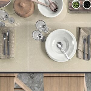 Compac Dakar is a composite marble product with a beige backdrop and limestone speckles scattered randomly over its surface. Not only it offers great aesthetics, but Compac Dakar also brings superior performance.