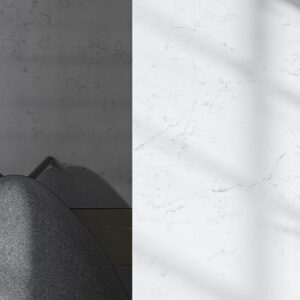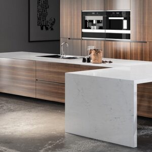 Compac Unique Arabescato is a new quartz stone that evokes the beauty of the natural Italian Arabescato marble but with superior performance characteristics and a 30 years available manufacturers’ warranty that back up its extreme resistance to stains and scratches.