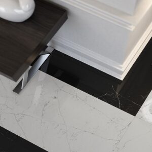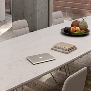 Compac Unique Venatino is a new quartz stone that evokes the beauty of the natural Statuario Venatino marble but with superior performance characteristics and a 30 years available manufacturers’ warranty that back up its extreme resistance to stains and scratches.