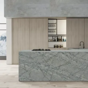 The robust texture and rich colour palette of Cristallo Platino add depth and sophistication to any interior. Whether it’s the focal point of a minimalist modern kitchen or a striking accent in a traditional living room, Cristallo Platino enhances the ambiance with its natural stone-like appearance.