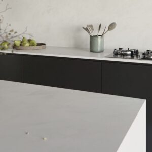 Dekton Albarium kitchen worktops are versatile and long-lasting. Their warm tones brighten interiors and add balance to open-plan areas. Moreover, the textured limestone effect brings natural elegance to both homes and commercial spaces. In addition, Albarium surfaces are sustainably produced, offering an environmentally responsible option without compromising durability.
