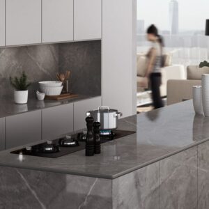 Dekton Korso offers the look of brown marble and is made as a non-porous material. This means you can use it for areas in contact with water without worrying about stains or having to use sealants.