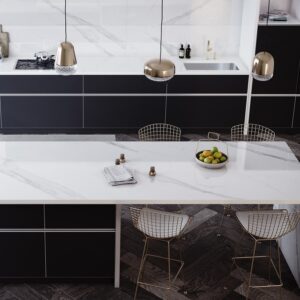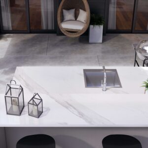 Dekton Olimpo is a white sintered stone worktop surface inspired in Classic marbles from Greece. In contrast with natural marble, Olimpo offers a material that can be used as kitchen worktops or in bathrooms without applying sealants.