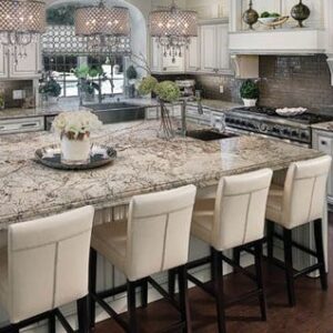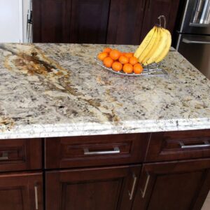 Delicatus granite is a natural stone with creamy, darker brown and grey hues. It displays a neutral colour palette that matches almost any design style, making it a popular choice in kitchen interiors.