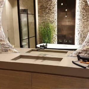 Diresco Noblesse Sand offers the aesthetics of Limestone with a quartz worktop material with superior performance to the natural stone. Displaying randomly scattered cream veins on an earthy terracotta backdrop, the stone brings natural harmony to any space.