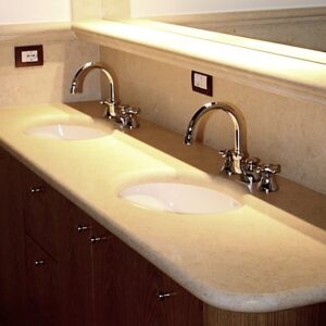 A yellowish limestone, with fossils, from Italian “giallo” (yellow)