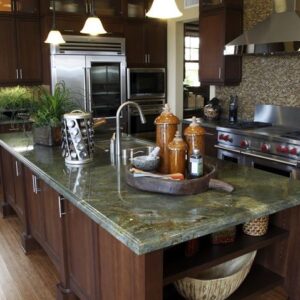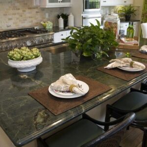 Kerala Green granite is a natural stone from the purest land in India that displays a distinctive combination of medium sized grains in dark and light green.