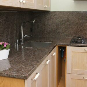 A soft brown granite with bright electric blue flecks. This is a popular and very appealing material in the UK