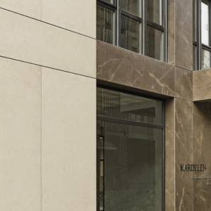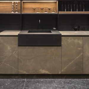 Neolith Pulpis is a brown surface with a tobacco tone inspired by the natural stone from Castellon, Spain with scattered white and gold veins across its surface. Neolith Pulpis is a sturdy material that will never fail to make an elegant statement and is whilst providing a subtle contrast to interior and architectural designs with lighter tones and shades.