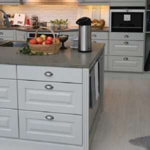 Okite Grigio Bardiglio is a quartz stone with mid-to-light grey colour base and enchanting dark grey veins displayed on a surface that offers the looks of Italian stones such as Bardigio marble, by offering an alternative material that does not require sealants yet won’t stain on kitchen worktop applications.