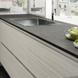 Okite Ocean Grey is a quartz stone with a mid-grey coloured base in combination with veins throughout a surface that offers the look of natural stones such as marble and limestone; by offering an alternative material that does not require sealants yet won’t stain on kitchen worktop applications.