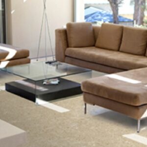 Quarella Cimabue is an engineered marble with a beige base and randomly scattered veins ranging in white and creamy tones.