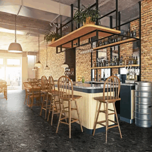 Quarella Grigio Carnico offers in retro-look of Italian Terrazzo marble with an engineered marble product that is easy to clean and maintain.