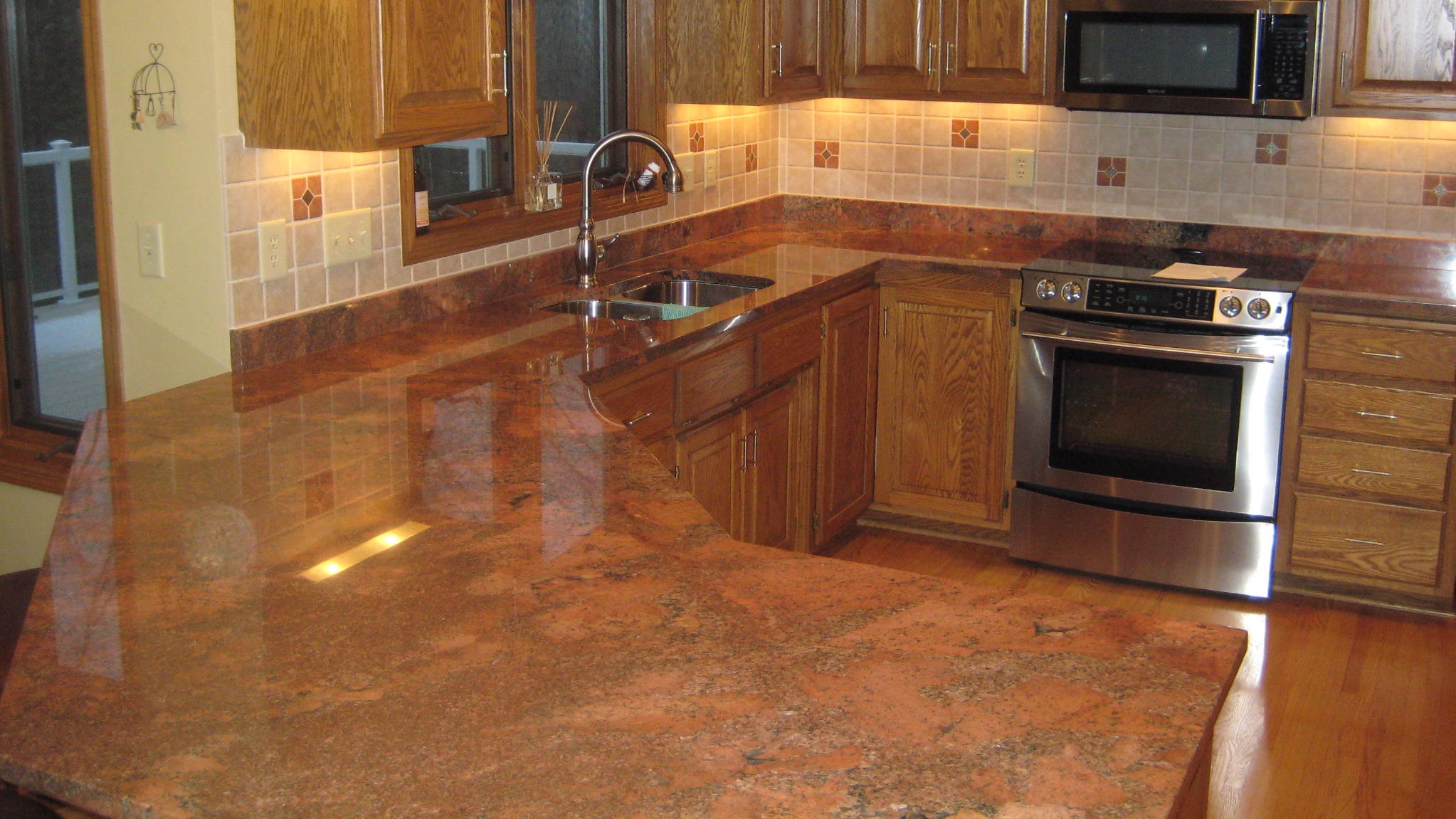A very popular granite in the UK with a sandstone-red tone, sweeps of grey grain