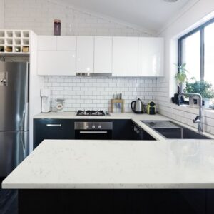 With a white background and grey veining, this colour works beautifully with all manner of kitchen designs and proves to be our most popular in the Radianz quartz range