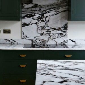 San Simone granite offers a distinctive white and black surface with striking veins and patterns to bring style and personality to any design.