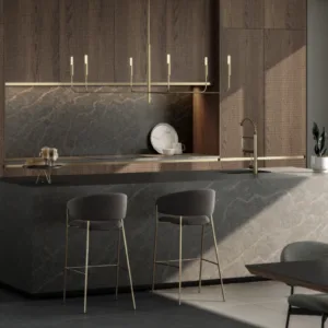 The Silestone Hybrid Q, inspired by golden lava flows, is more than a surface. It enriches spaces with its story and unparalleled beauty. This material showcases the limitless possibilities of design, pushing us towards aesthetically and environmentally conscious interiors.