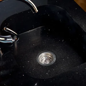 Silestone Negro Stellar is a deep black background quartz stone presented with a spectacular array of scattered mirror pieces that will bring sophistication and glamorous appeal and looks to any interior space and environment in which it is displayed.