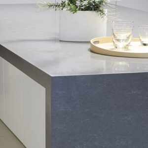 Unistone Uliano is a quartz stone with a grey background and appealing white veins evoking the natural beauty of Italian grey marbles such as Grigio Carnico, Bardiglio and Emperador Grey marble.